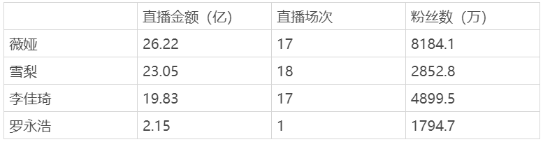 直播带货“四大天王”618 战绩