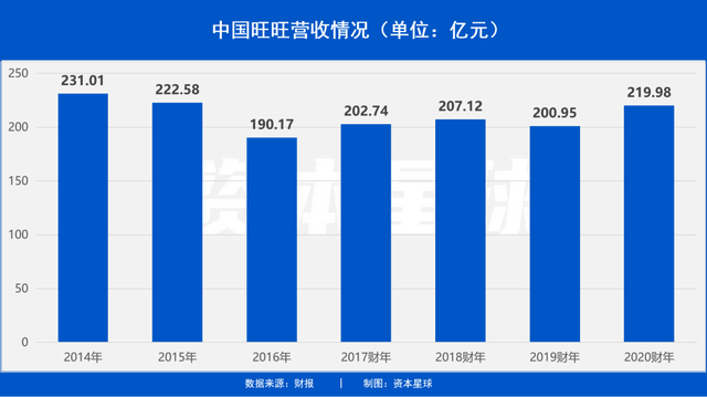 过去数年,旺旺的营收额都在200亿上下浮动,净利润也维持在35-40亿区间,接近于原地踏步。
