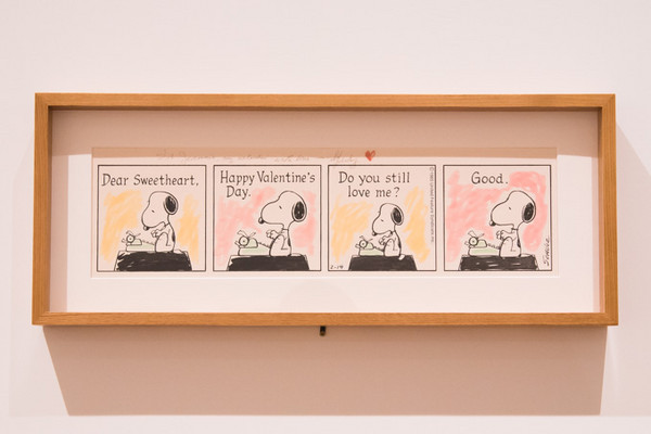 从即日起至9月23日,开幕纪念展也将展出许多从未曝光过的原画手稿。例如,查尔斯·舒尔茨在1985年情人节时,将黑白原稿涂成彩色,同时加上红色爱心送给夫人作为情人节礼物的原画。