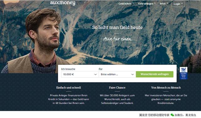 Auxmoney要求借款人将资金需求挂在P2P平台上,内容包括借款金额及最高可承受利率,然后由贷款人展开竞标。拍卖期20天,一旦认购金额等于借款额,拍卖自动结束。贷款协议达成后, Auxmoney会按贷款金额的1%,向贷款人收取中介费。