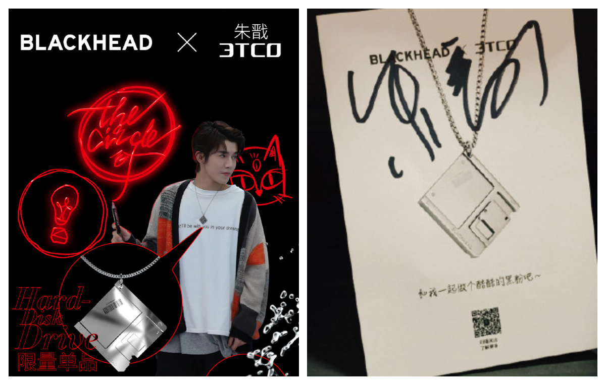 2020年6月,BLACKHEAD黑头与演员朱戬及其个人品牌 3TCO 合作,推出一款联名项链 Hard-Disk Drive。
