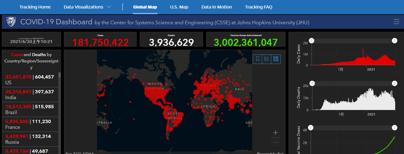 美国约翰斯·霍普金斯大学统计数据显示,截至北京时间6月30日上午10时左右,全球新冠疫苗接种总量已超过30亿剂。