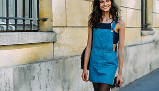 在普通长裤或短裤上端缝一片护胸,加上背带,不封腰,即是背带裤最简易的雏形。这种从机工工作裤的式样变化而来、又称工装裤的廓形光听着就女人味扫地,可它的发挥余地又实在容易给人惊喜。