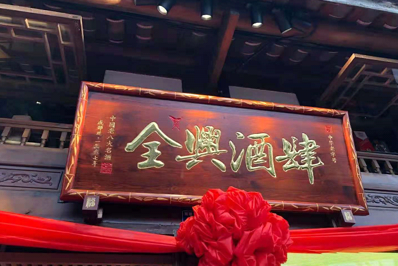 2021年全兴酒肆复古形象店亮相成都宽窄巷子,虽然没有“后坊”,但复刻了“前店”格局,门首代表性的两行楹联仿佛将时光拨回到两百年前。酒香四溢的全兴酒肆不仅是市廛百姓的最爱,也深受文人志士的赞誉。无论是联社聚会,诗酒相娱还是阖家团圆,都少不了那杯齿颊留香的全兴酒。