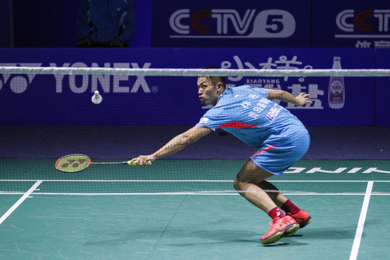2015-2016年中国羽毛球俱乐部超级联赛季后赛,林丹接球。 (摄影:赖进财)