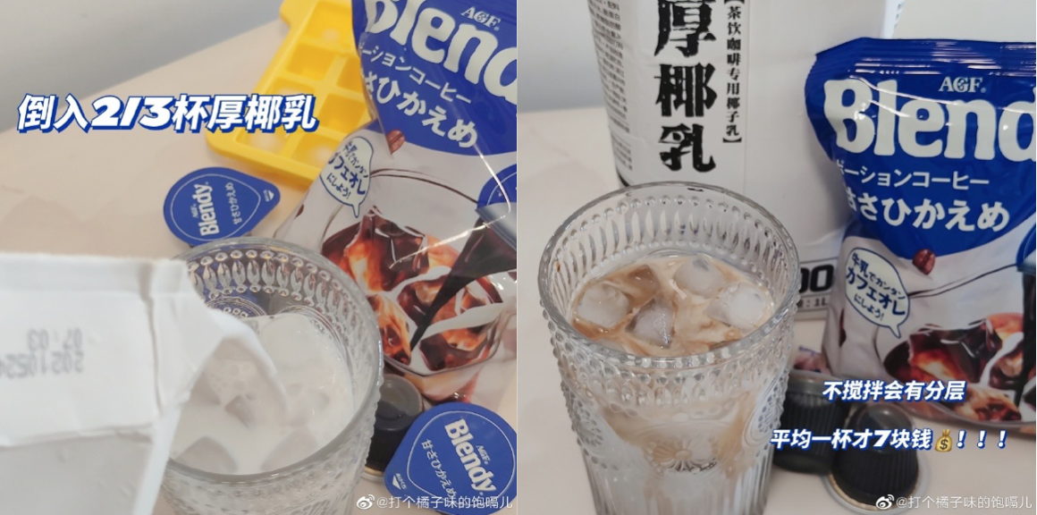 不止是瑞幸咖啡,不少独立咖啡店也推出了生椰拿铁的产品。而在抖音或者小红书上,你会看到很多因为买不到生椰拿铁的网友,跑到咖啡店里“偷拍”后厨使用的厚椰乳,再从电商平台下单,自制生椰拿铁。