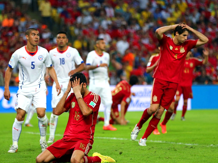 5. 然而2014年的巴西世界杯上,西班牙队再也等不到这样荣耀的时刻。就在小组赛0-2不敌智利提前出局的同一天,曾在王宫授予他们无上荣誉的胡安·卡洛斯也宣布退位,王储费利佩则继承王位。两个王朝,以两种不同的方式完成告别。