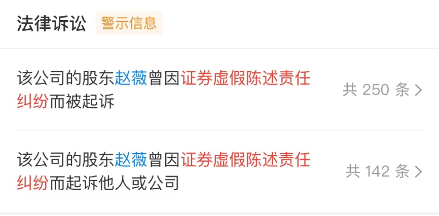 但现如今来看,比这更可怕的是,持续不断有散户以证券虚假陈述责任纠纷起诉赵薇。据天眼查数据显示,这两年赵薇的龙薇文化相关官司多达349起。看来当年现代快报的记者称赵薇面临百余股民高达680万索赔,并非空穴来风。