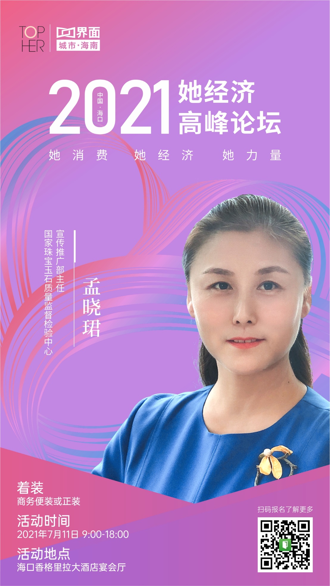 自然资源部珠宝玉石首饰管理中心(国家珠宝玉石质量监督检验中心)宣传推广部主任孟晓珺女士将于7月11日出席由海南省妇女联合会指导,界面新闻海南频道、中国女性财经媒体TOPHER、海南自贸区一号财经文化传播有限公司主办,FM100海南交通广播《声动早班车》栏目承办,海南三乐数字媒体有限公司独家户外媒体支持的“2021她经济高峰论坛”并发表主旨演讲“新时代·她经济与珠宝玉饰文化消费”。