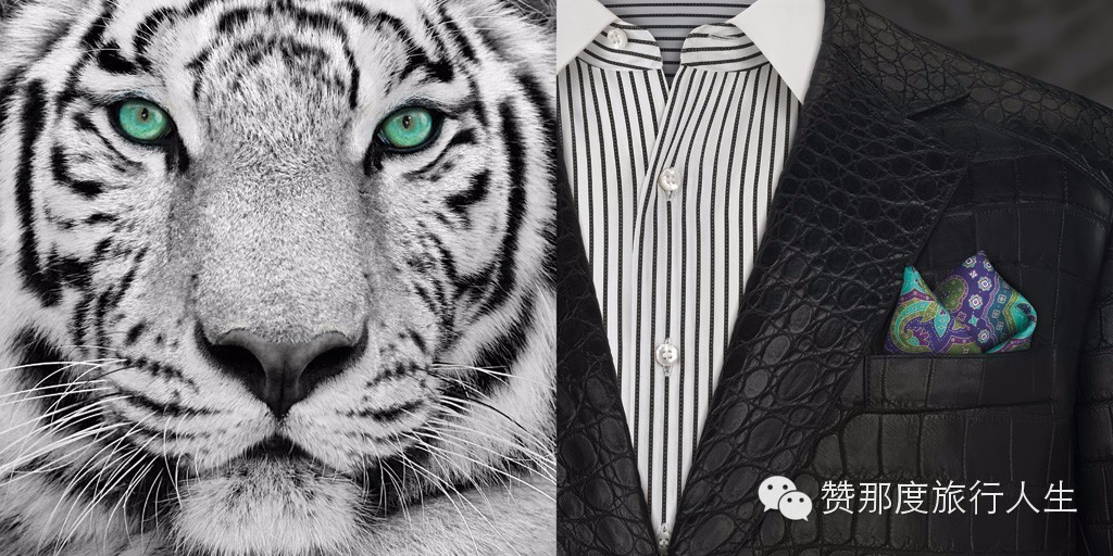 当Ricci想要发挥奇思妙想的时候, 世界上存在的材料可能已经不够他玩弄, 于是他创造了黑貂绒--由95%的山羊绒融合5%的黑貂绒毛而成的新式材料, 而这种材料可以使得毛料不会从丝线上分离。而就连极其少见, 奢华到极致的鸵鸟皮, 鳄鱼也被用到了Stefano Ricci经典的夹克, 西装制作上, 可见品牌的任性程度...