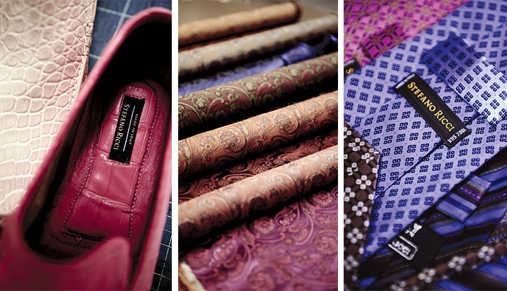 作为Stefano Ricci家的看家产品, 领带从男装中的配饰一跃成为了主角。到今日, Ricci依然坚持亲自设计每一季的每一款领带。从7000余种颜色搭配以及60-70种花纹当中, 组合设计出绝不相同的领带。