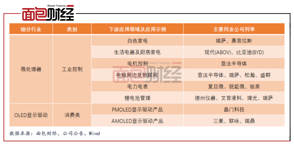 公司于2012年登陆创业板。公司主要产品为工业控制级别的微控制器(MCU)芯片和OLED显示驱动芯片,前者主要应用于家电主控、锂电池管理、电机控制、智能电表及物联网领域,后者则主要用于手机和可穿戴产品的屏幕显示驱动。