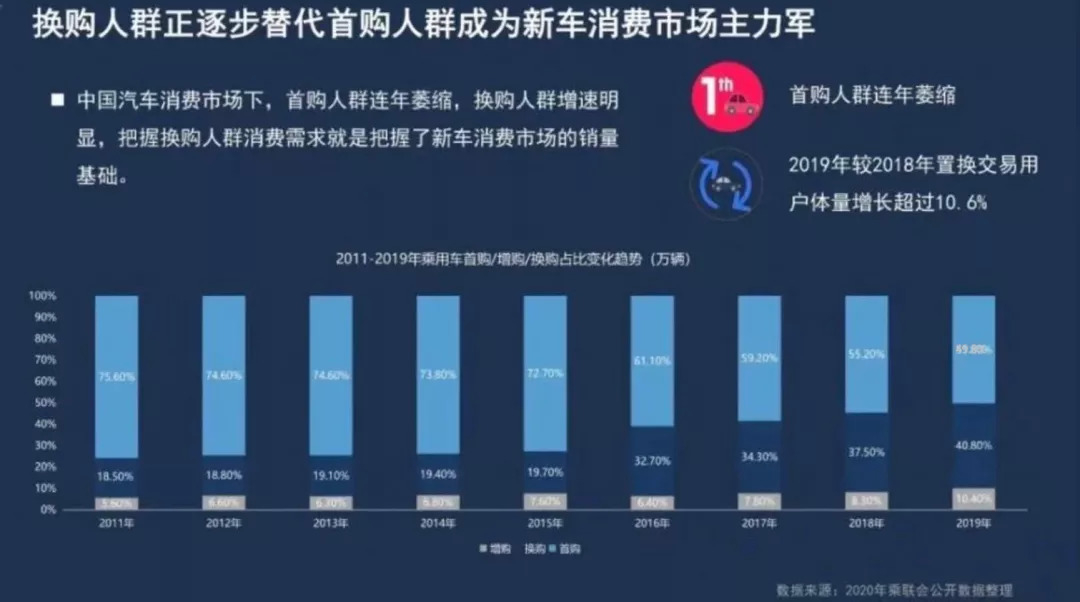 根据行业分析显示,2019年中国车市已进入存量阶段,首购车交易连年下降,并且再购用户突破50%。