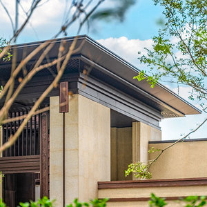 首先是奢华气派的新中式小区大门了,光是这个大门,据说龙湖就花了200多万来设计建造,按照中国古代宫廷王府的规格,采用中式挑檐的设计,气派和尊崇的感觉迎面而来。