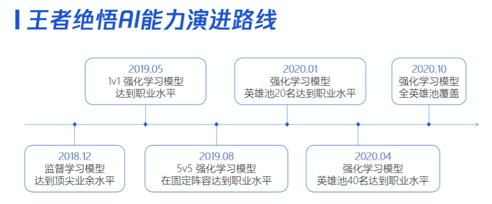 在这一次公开的用户测试中,王者绝悟体现了不输于甚至超越顶级人类玩家的复杂场景决策能力。腾讯互动娱乐天美 L1 工作室总经理、王者荣耀执行制作人黄蓝枭在一次公开演讲中提到:在 2020 年 11 月 17 日 - 30 日的 " 挑战王者绝悟 " 玩法中,总对局次数达到了 7276 万;最高难度的挑战里,王者绝悟胜率达到 96.2%。