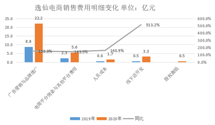 逸仙电商在2020年年报中提到:预计其销售费用将在绝对数量上增加,因为公司在寻求继续提高品牌的知名度,推出新品牌和产品,并在所有分销渠道扩大产品的营销力度,以及进一步扩大线下体验店网络。