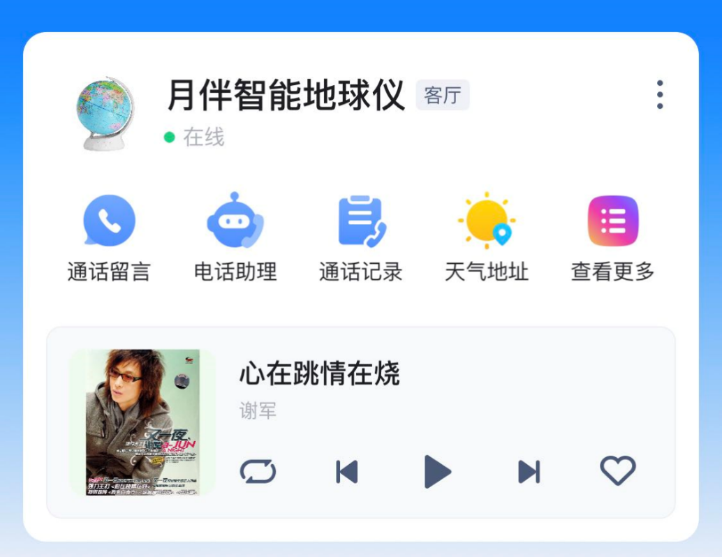 除了这些,天猫精灵的诸多功能也被一股脑“灌”到了月半地球仪上。因此,它可以设置闹钟、询问天气、播放音乐、讲故事、听儿歌,甚至还可以控制空调、洗衣机、窗帘、插座、扫地机器人、监控摄像头等等,俨然变成了控制中枢。