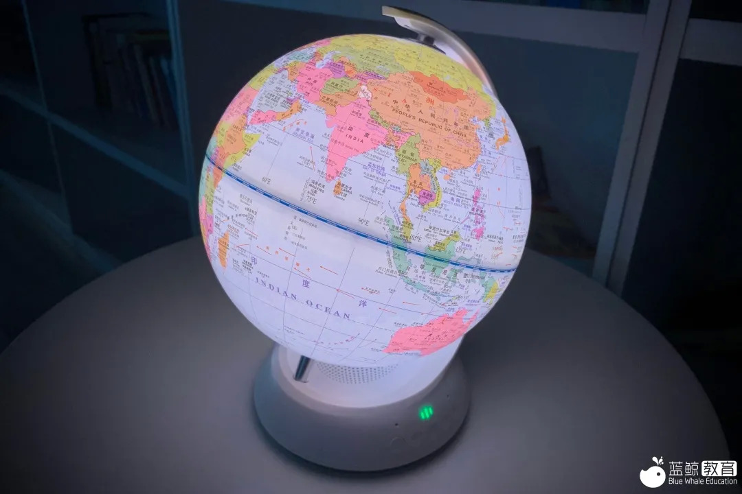 蓝鲸教育本期测评“北斗”旗下的“月半AI+AR智能交互地球仪”(以下简称“月半地球仪”)。先说结论:在智能模块快速普及的当下,地球仪或可成为智能音箱的“变种”。