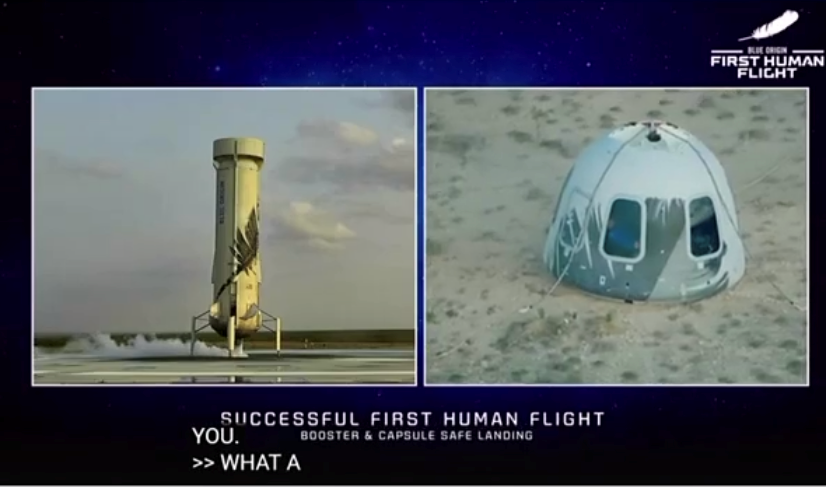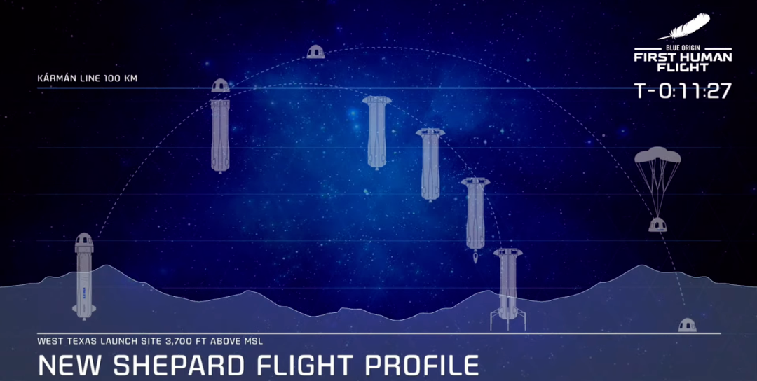 在7月5日刚刚卸任首席执行官后,亚马逊创始人杰夫·贝索斯(Jeff Bezos)和其弟弟马克 贝佐斯(Mark Bezos),以及18岁的高中生奥利弗·戴蒙(Oliver Daemon)和82岁的女航天员沃利·冯克(Wally Funk)作为此次飞行的乘客,在无任何宇航员或专业人员的陪同下,体验了约3分钟的失重状态,同时通过飞船舷窗观看地球弧线及太空景观。