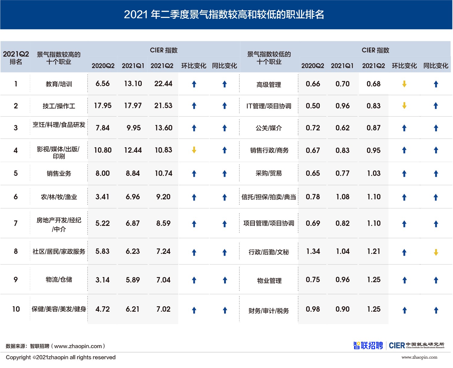 报告显示,从行业来看,二季度不同行业之间的就业景气极化程度进一步上升,CIER指数最高和最低行业之间的差别倍数为35.46倍,高于上季度的24.93倍和去年同期的14.83倍。