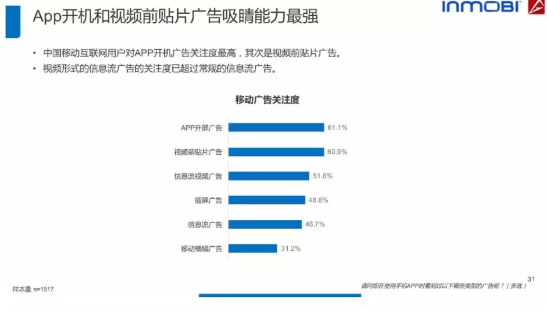 但是这样的强制模式,受到不少广告商的喜爱,因为可以让广告有最大的曝光时间和曝光量。在这个流量为王的时代,广告商亟需的就是流量。根据央视财经频道消息,开屏弹窗广告是很多手机应用流量变现的主要方式,某些手机 APP 开屏弹窗广告带来的收入,可高达其总广告收入的 80%。根据长江证券在 2018 年的估算,抖音的开屏广告价格,已经达到了280万/天。另据相关数据统计,APP开屏广告目前成为最受关注的广告,其吸睛能力已经超越视频广告,稳居第一位。