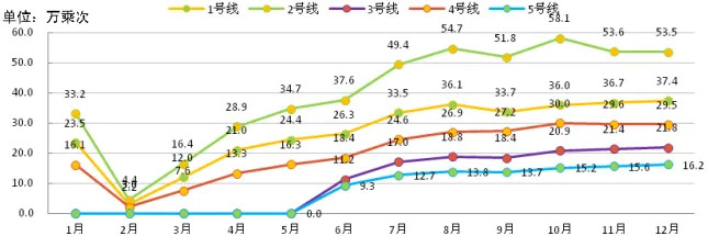 图:2020年1-12月长沙市地铁日均客运量发展图