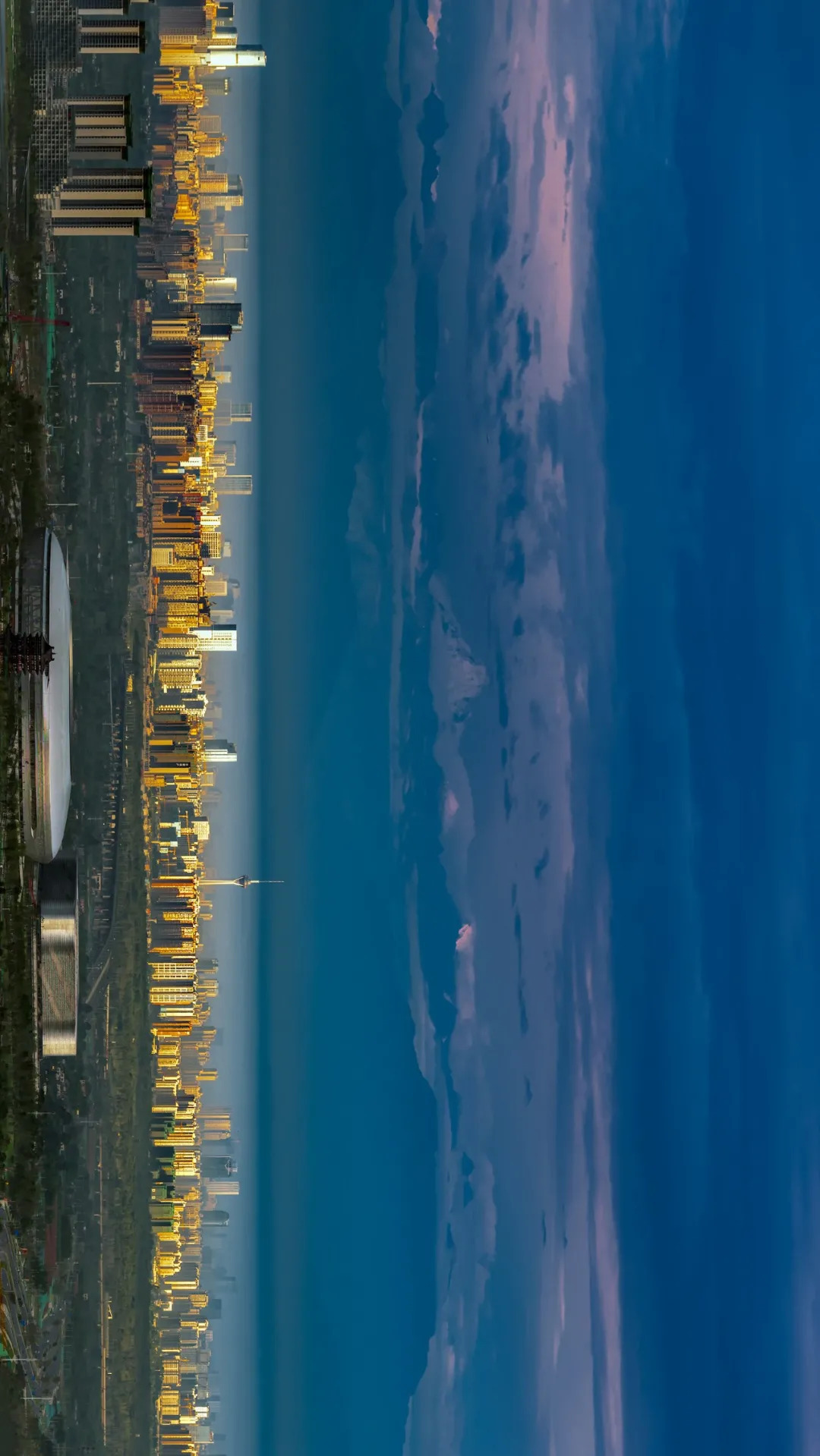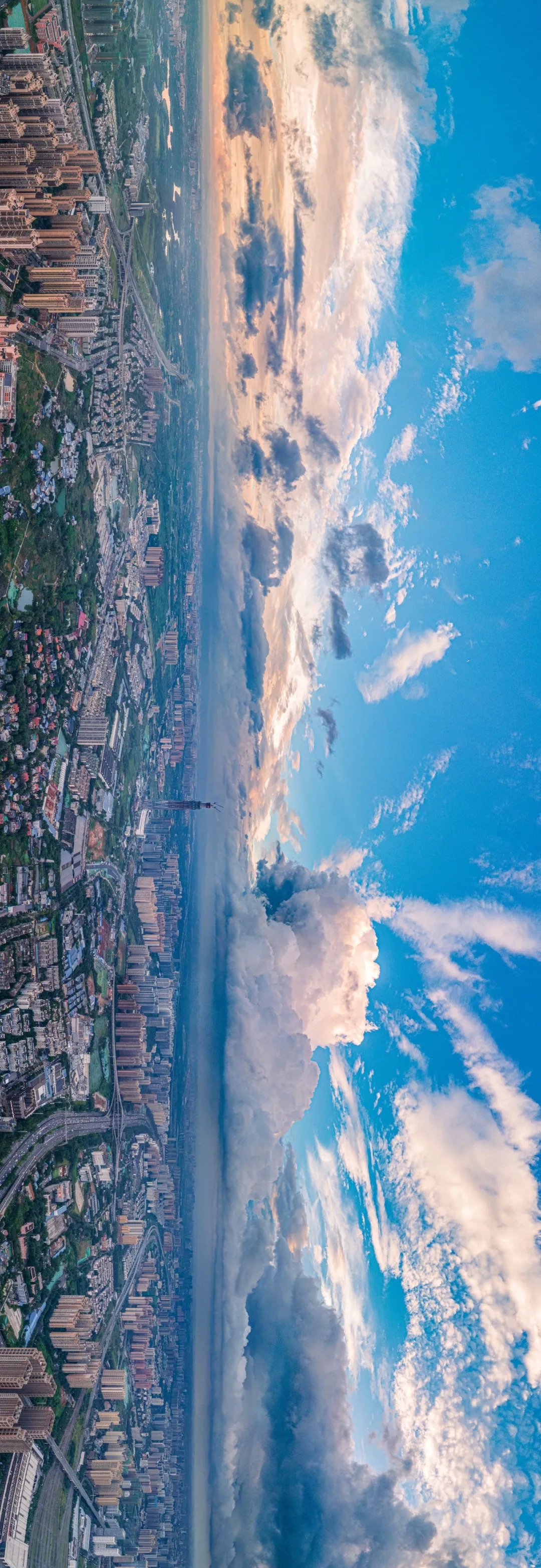 公园城市蓝天白云,绿荫环绕,楼宇、树木相互点缀映衬,构成一幅公园城市的美好生活图景。