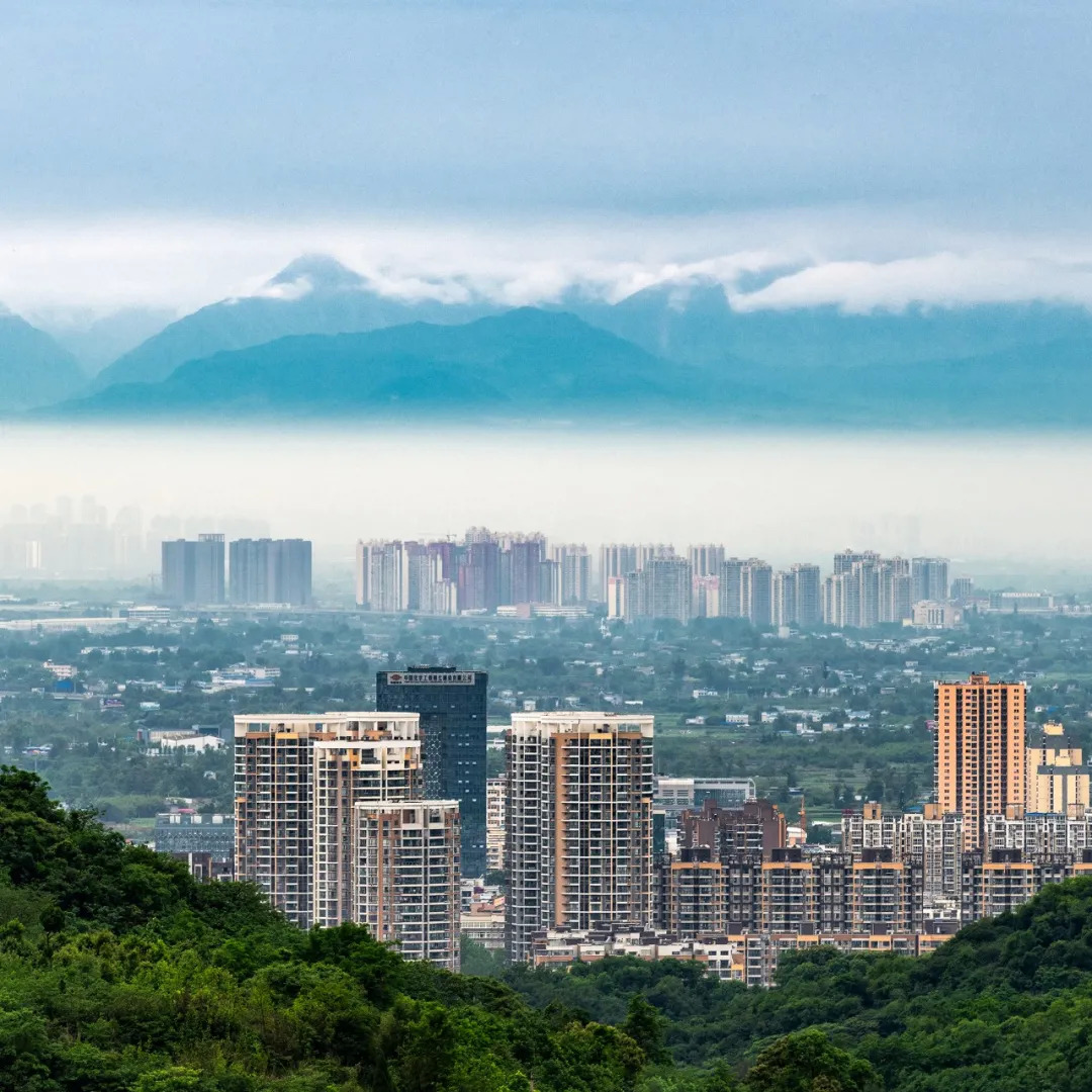 从成都天府广场到幺妹峰的直线距离是120公里,到贡嘎山的直线距离是240公里,实现城市与雪山两两相望,需要很好的天气和通透性,公园城市建设自然功不可没。