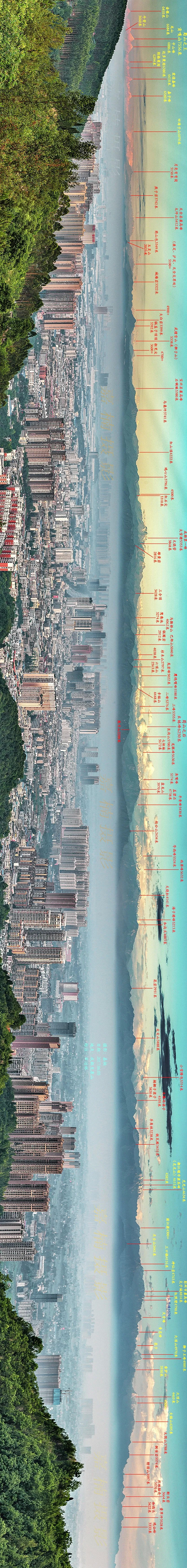 2017年,嘉楠在龙泉山上连续拍下32张雪山图,拼接成一幅94座雪山与城市同框的《雪山长卷》。远处连绵不绝的雪山和近处一派生机的公园城市交相辉映,一幅“雪山下的公园城市”的画卷徐徐展开。
