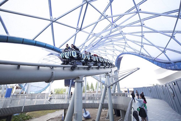 这大概是园区内最吸引成年游客的地方。喜欢过山车项目的游客可以选择创极速光轮,它时速可达100公里,被认为是全球迪士尼乐园中最刺激的一个项目。这个项目的座位被设计成两轮光轮摩托,游客们将被带入由多彩灯光、投影和音效营造出的幻想空间。