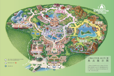 上海迪士尼乐园由六大主题园区组成,包括“米奇大街”、“奇想花园”、“探险岛”、“明日世界”、“宝藏湾”及“梦幻世界”。