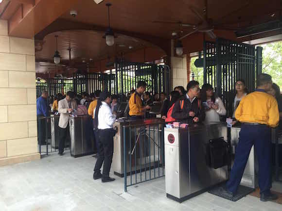 试运营期间,“梦幻世界”的项目开放最为全面,这个园区的“快速通行证”发放点在城堡后方。一般而言,快速通行项目是迪士尼乐园里的热门项目,需要较长时间的排队,节省时间的话可以先到指定的游客服务中心领取快速通行证,然后在指定时间内回来体验。比如以“小飞侠天空奇遇”项目为例,正常的等待时间大约在50分钟,而拿到了快速通行证之后,我在几分钟之内就坐上了神奇海盗船。