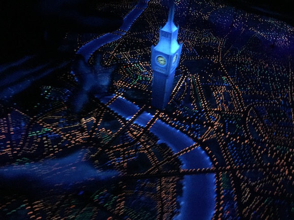 游客会坐上一只可以容纳30人的小木筏,穿过两只海盗舰队的交战区域。在这个项目中,迪士尼运用了三块巨型多媒体穹顶、投影效果以及复杂的光影和声音系统、机器人模拟技术来还原海战的情景。乘客所坐的海盗船则能够旋转、移动并敏捷地根据船体位置触发动作与相应场景音效。