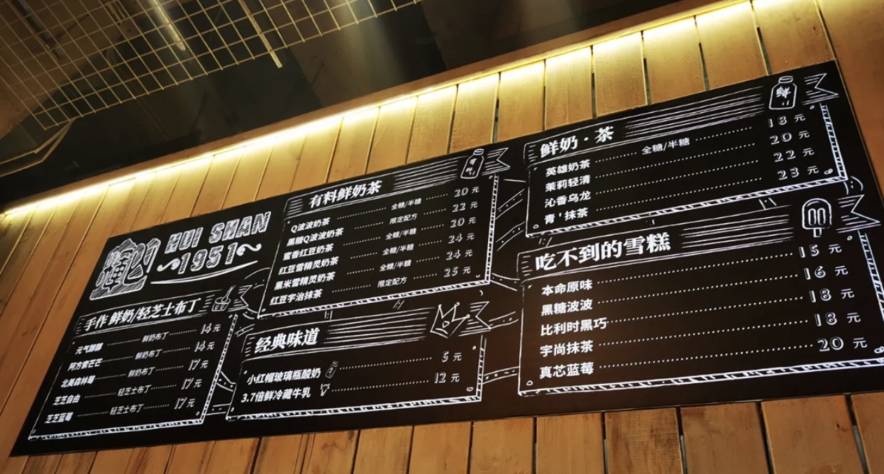 比如,辉山旗下的年度明星新品“2054港式鸳鸯鲜奶茶”,就出现在了新开的快闪店中。辉山优品在公众号中介绍称,这款鲜奶茶以鲜牛奶和红茶调配而成,其港式鸳鸯的新口味融合了南北口味习惯。