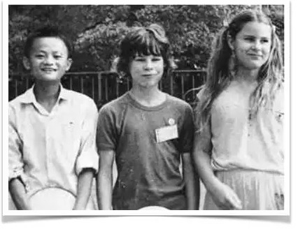 当年还是小鲜肉的小马同学喜欢英语,在他12岁的时候,开始自学,自己主动到大街上去找老外练口语,照片为证。