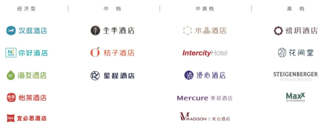为满足不同人群的需要,华住酒店推出了以汉庭为首的经济型酒店;以全季、桔子、水晶酒店出名的中高端酒店;以及高端市场的禧玥酒店和花间堂等25个的酒店品牌,完成了从经济型到中、高档次的酒店类型的全覆盖。