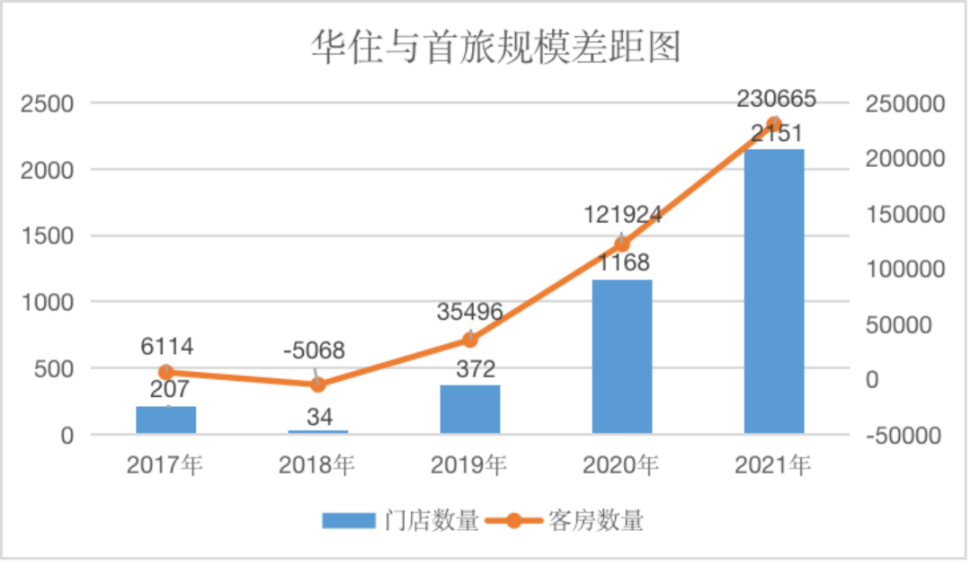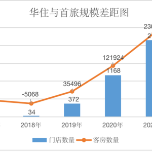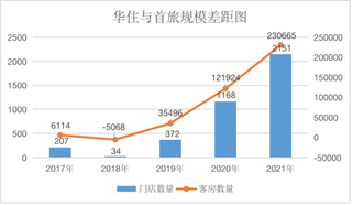 图:华住与锦江门店、客房规模差距(来源:中国饭店协会)