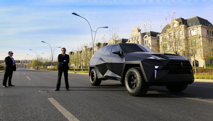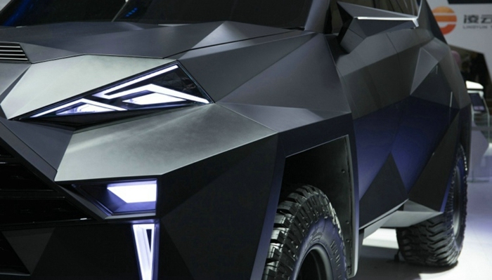 5. 从外观上能看出这款车在设计方面的新颖,如同蝙蝠侠的座驾一样,车身由多块不规则的三角立体图案组成,整个车辆的外壳被哑光的黑漆所覆盖,看上去就像B-2隐形战斗机一样拉风。大灯、感应门把手、和外后视镜、转向灯也都采用三角形设计,并使用LED光源。值得一提的是,限量的10款车型均为防弹车,防弹级别达到了德国DIN52290及民用最高允许等级,防弹是卡尔曼限量款的一大卖点,也是售价过千万的主要原因。