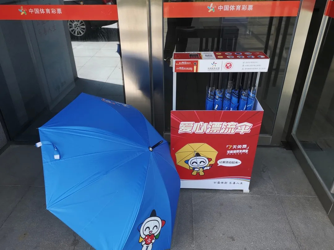 爱心漂流伞服务以7天免押金免费借伞公益形式,为广大群众提供便利的晴雨天出行服务。目前,第一批试点的150家体彩实体店已全部安装完服务设备。