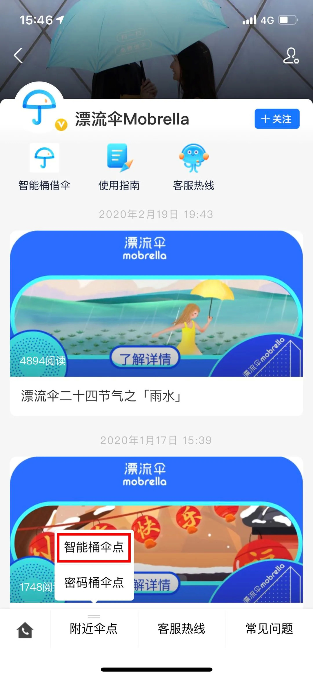 在支付宝上搜索【漂流伞】,点击【附近伞点】-【智能桶伞点】就可以选择最近的漂流伞点归还,让借还漂流伞更便捷!