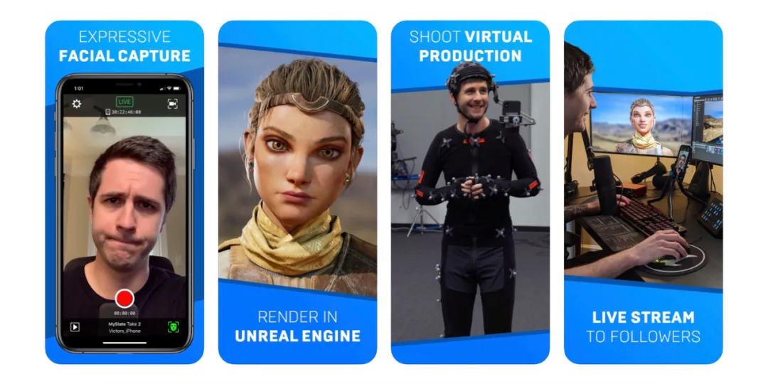 让数字人动起来的最后一步是导入到“虚幻引擎”中,然后下载Live Link Face手机APP,其前置摄像头将捕捉用户的表情、动作,控制数字人在 “虚幻引擎”中完成实时渲染。