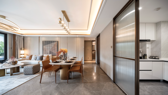 值得一提的是,天晟玥府(推广名:龙湖中天·天玥)还在产品奢装层面做了精心的迭代,客厅地面进口大理石+雪花白陶板背景墙,呈现优雅的高级感,而德国柏丽原装橱柜、德国博世厨电、日立中央空调、威能的全屋地暖等“全维度”配套,更营造出“一步到位”的未来生活空间(注:上述装修品牌均为升级装修标准,非基础装修交付标准,且不同户型装修标准可能不同,具体装修标准请以双方签订的商品房买卖合同及升级装修补充协议约定为准。)。
