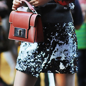 除了连身开叉外,钟小姐这样的拉链半裙,搭配中跟尖头鞋就足够出挑了: