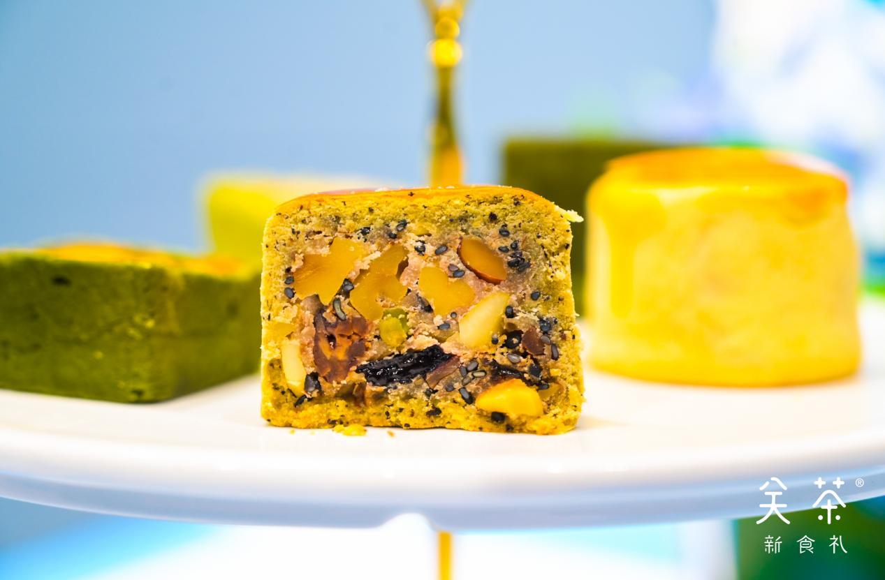 “再比如关茶新食礼3年来的爆款茶立方月饼,就是将茶文化与月饼结合的一款文创月饼。中点西制,加入奶酪将传统月饼皮改造成抹茶芝士奶酥皮,配合上流心咸蛋黄,让月饼不甜不腻还带着微微咸香,这其实是新一代消费群体对一款真正好吃的月饼的要求。”小关提到茶立方月饼的差异化创新时,很骄傲的说。