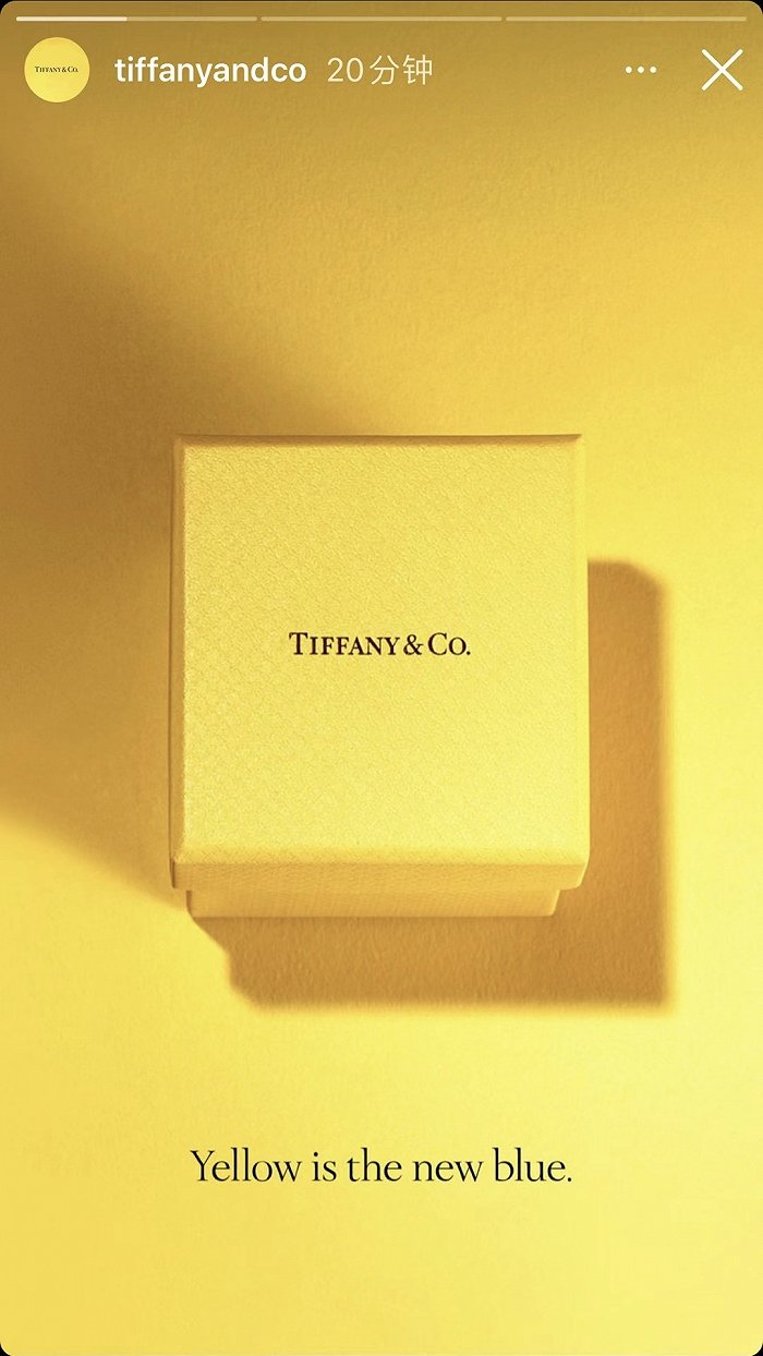 值得注意的是,这一切始于蒂芙尼在愚人节开的一个玩笑。2021年4月1日,蒂芙尼曾在Instagram官方账号上发布了一张黄色蒂芙尼包装盒的图片,并配文暗示经典的“蒂芙尼蓝”可能会被黄色取代。