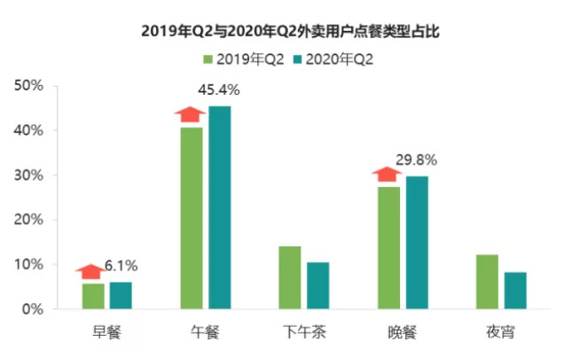 外卖是场景相对稳定的高频消费业务,消费者点外卖的主力场景基本是“早餐、午餐、下午茶、晚餐、宵夜”这5个,且最看重的是平台即时配送的速度、效率以及餐饮商家选择品类。