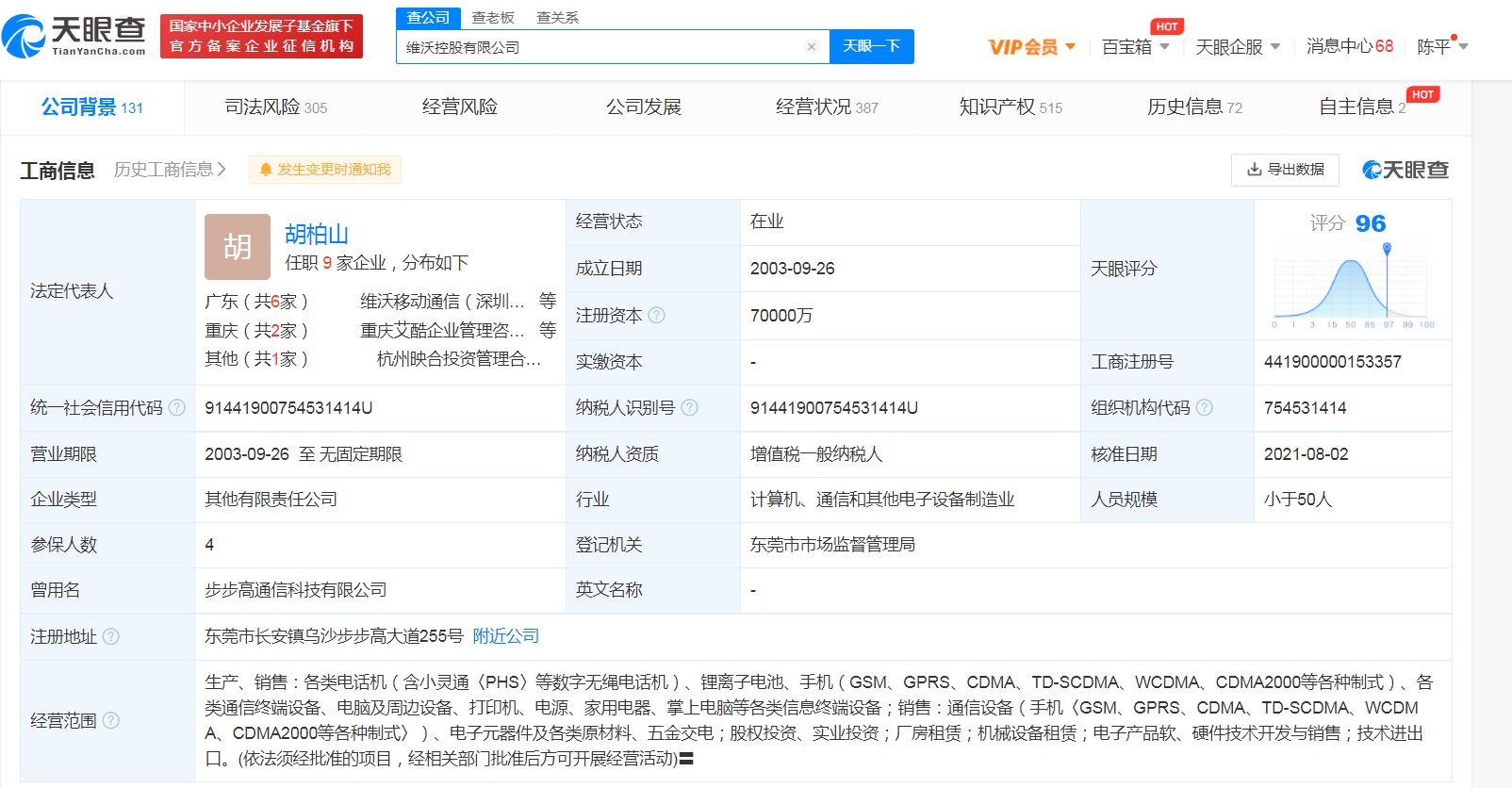 据天眼查APP显示,8月2日,维沃控股有限公司发生工商变更,公司注册资本由6.5亿人民币增至7亿人民币,增幅约为7.69%。股东信息显示,该公司由维沃企业管理咨询有限公司工会委员会与重庆本讯商贸合伙企业(有限合伙)共同持股,持股比例分别约为64.29%、35.71%。