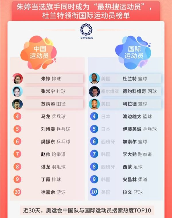 据奥运开幕前夕发布的《百度东京2020奥运会搜索大数据》,“最热搜运动员”前五位朱婷、张常宁、苏炳添、马龙、刘诗雯。除了苏炳添,其他人全部入驻了抖音。不仅如此,因拿下奥运首金而成为最耀眼新星、如今已斩获两枚金牌的射击选手杨倩也入驻了抖音,而她的同款“好运发卡”已经在抖音开卖了。