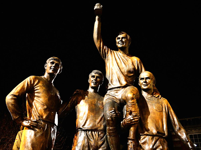 5. 此外,世界杯历史上唯一一个在决赛中上演帽子戏法的赫斯特与另一位冠军成员彼得斯均来自西汉姆联。在巴金路上树立的那座名为“冠军”的塑像,便描述了西汉姆联出身的三名球员帮助英格兰国家队获得世界杯冠军的场景。