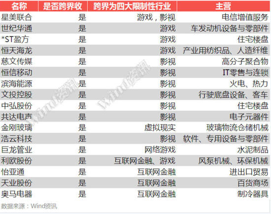 1、跨界收购四大限制性行业。